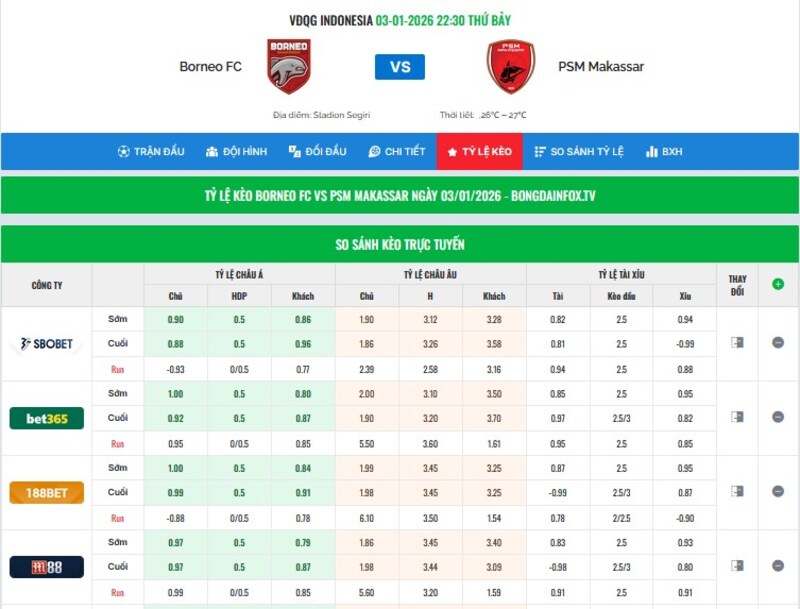 Điểm mạnh lớn của bongdacom là khả năng hiển thị biến động tỷ lệ kèo theo thời gian. Đây là yếu tố cực kỳ quan trọng với cược thủ có tư duy phân tích, bởi: