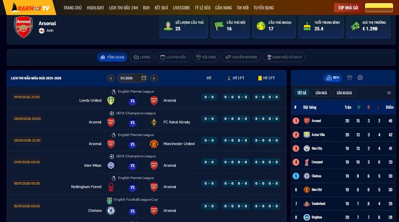 Trong vô vàn nền tảng bóng đá hiện nay, Ra Khoi TV nổi lên như một địa chỉ quen thuộc, nơi bảng xếp hạng không còn là những hàng số khô cứng, mà trở thành một bức tranh sống động về toàn bộ mùa giải Premier League.